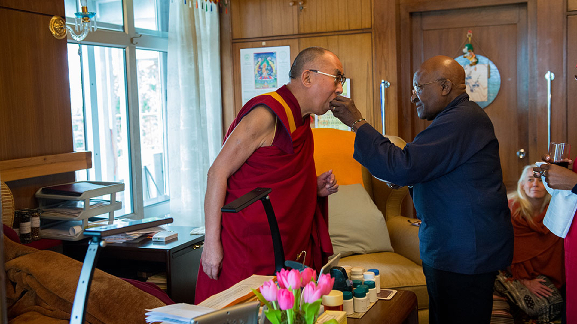 Consisting largely of never-before-seen footage shot over 5 days at the Dalai Lama’s residence in Dharamsala, the film invites viewers to join these luminaries behind the scenes as they recount stories from their lives, each having lived through periods of incredible difficulty and strife. With genuine affection, mutual respect and a healthy dose of teasing, these unlikely friends impart lessons gleaned from lived experience, ancient traditions, and the latest cutting-edge science regarding how to live with joy in the face of all of life’s challenges from the extraordinary to the mundane.